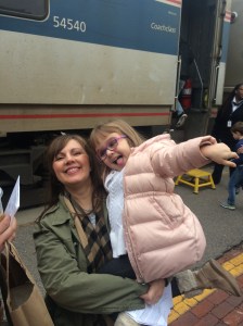 Flash forward to a surprise snowy March day in 2018. At the Amtrack station in Kirkwood using the wonderful gift cards Aunt Jo had given to all of us. Kate is wide-eyed and excited, just like Dad and Mom to get on the train.